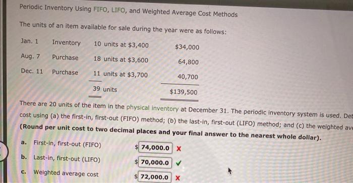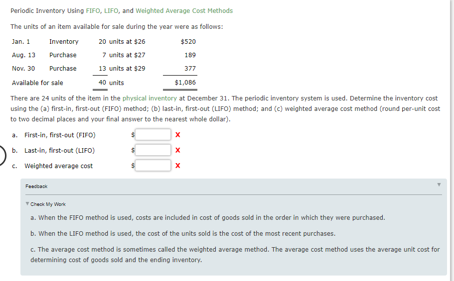 This article explains the use of first-in first-out FIFO method in a periodic inventory system. And c weighted average cost method round per-unit cost to two decimal places and your final answer to the nearest whole dollar. And c the weighted average cost method round per unit cost to two decimal places and your final answer to the nearest whole dollar.